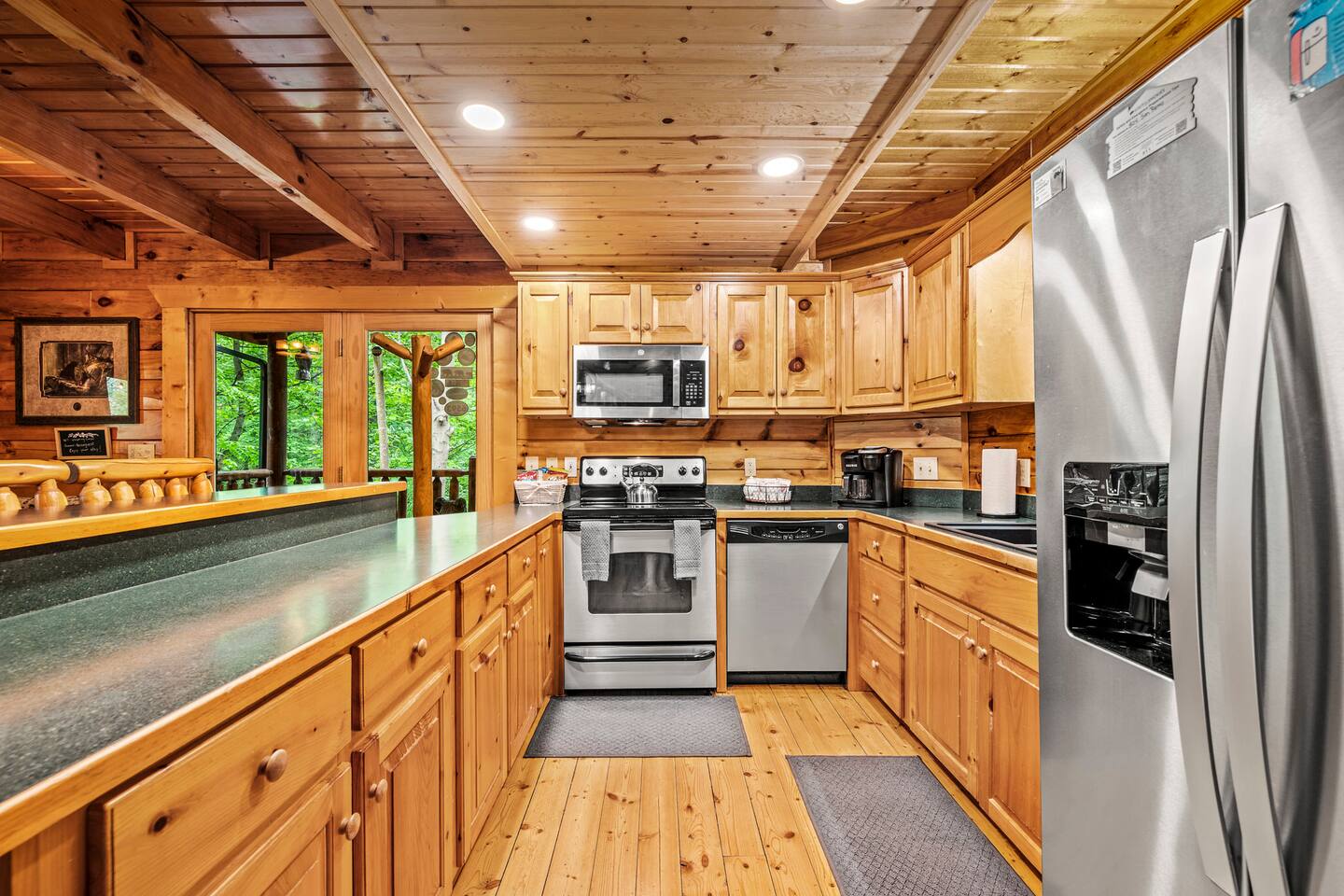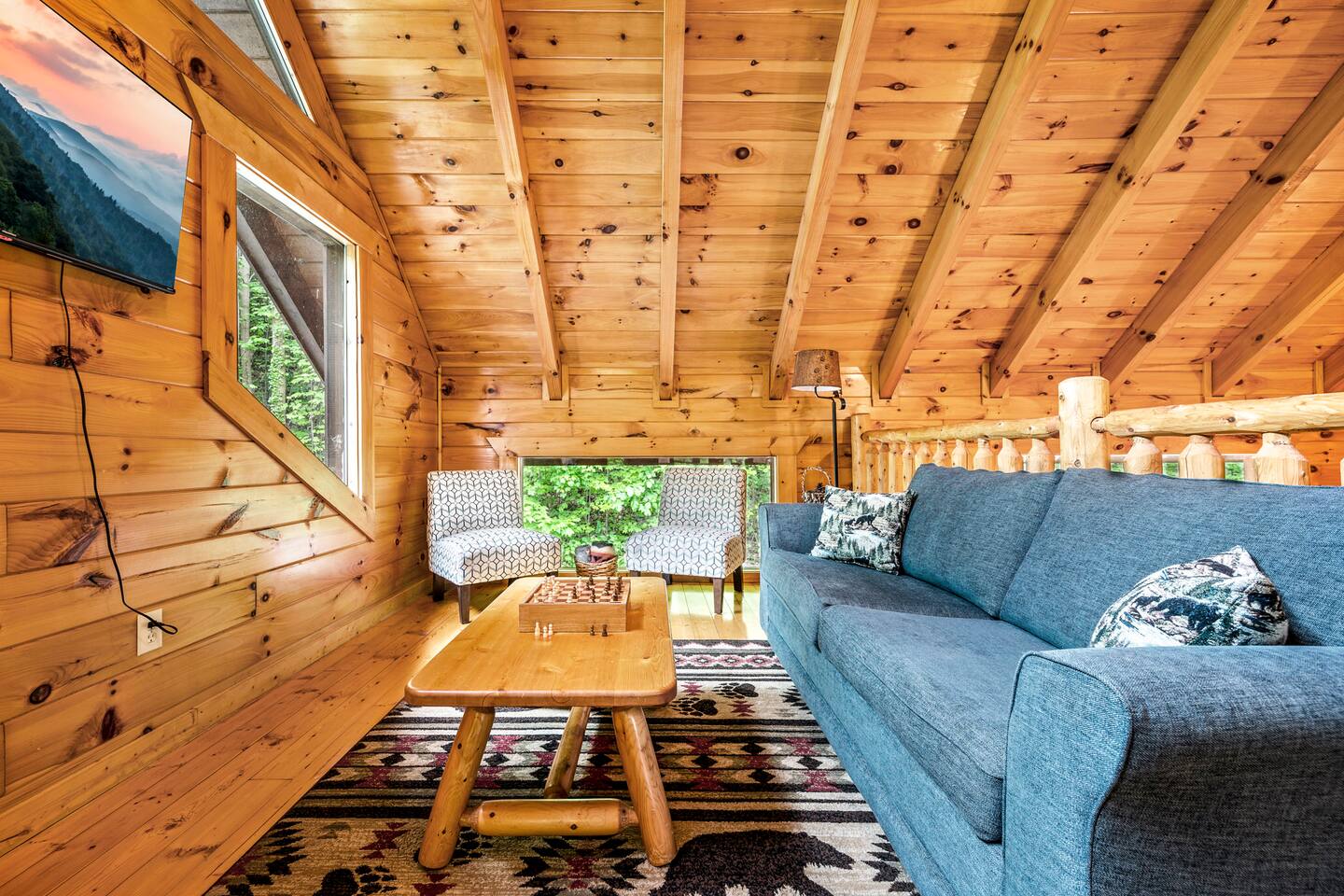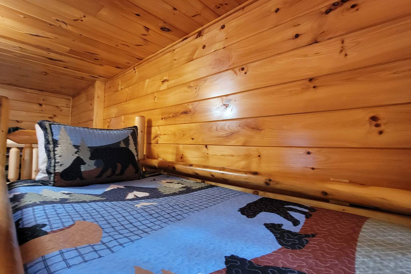 Imagine a charming log cabin, tucked into the woods but only 3 minutes to town. With regular bear visits too! Whispering Canyon includes: -Comfortable accommodations for up to 12 guests - Approx. 2500 square feet of indoor space -3 Private Bedrooms with full private bathrooms -3 Decks that each run the full length of the cabin -3 Living areas with comfortable seating -High Speed Wi-Fi and smart TV's -Pool table & Arcade Games in the rec room -Reading nook and board game table in the loft -Hot tub on lower deck -Propane Firepit on deck - Tons of Outdoor Seating -Fully equipped kitchen and dining space -Gas BBQ grill - No smoking, No animals allowed Whispering Canyon, located off Ski Mountain Rd in Gatlinburg, is the ideal traditional log cabin perfect for gatherings of friends and family. Situated at the top of over an acre of forested land, the cabin boasts three separate living spaces, ensuring there is space for everyone to spread out. Large open spaces also make it easy to all gather together. All 3 decks come with multiple rocking chairs and cushioned seating to unwind and enjoy your morning cup of coffee or your evening glass of wine (or 'shine). The hot tub is bubbling and inviting. The pool table is ready for friendly competition. The kitchen is fully stocked with everything you need to prepare any meal. Roku enabled Smart TVs allow you to access your own streaming subscriptions from every room throughout the cabin. When you are ready, Gatlinburg, Pigeon Forge, Great Smoky Mountains National Park, Dollywood, and all local attractions are just a few minutes away. Whispering Canyon is located: -1.1 Mile to the Parkway in Gatlinburg -1.3 Miles to the Main Entrance to GSMNP -1.9 Miles to Anakeesta -2.0 Miles to Ober Mountain -7.5 Miles to Pigeon Forge -10 Miles to Dollywood Main Level -Great room with living room, fully equipped kitchen, dining room with seating for 11, King bedroom and full bathroom with jetted tub and separate shower. Access the full length deck with gas BBQ and patio table from the living room and the bedroom. Upper Level - King bedroom with full bathroom, catwalk to the loft with comfortable seating, Smart TV, board game table and Queen sleeper sofa. This is a perfect quiet spot for reading, playing a game, or getting some work done. The full length deck can be accessed by both the loft and the bedroom. Lower Level - A large multi-use recreation room with sectional sofa in front of a 65 inch Smart TV, a pool table, arcade games, and pub table w/ stools. The 3rd bedroom is next to the rec room, with a twin over full bunk bed, and full over full bunkbed. The attached full bathroom has a tub/shower combo. Access to the deck with hot tub is found in the bedroom and rec room. A half bath and laundry room with stacked washer and dryer are downstairs as well. Whispering Canyon has good cell strength and free strong wi-fi. All TVs are streaming capable, allowing you to log in to all your favorite streaming apps.