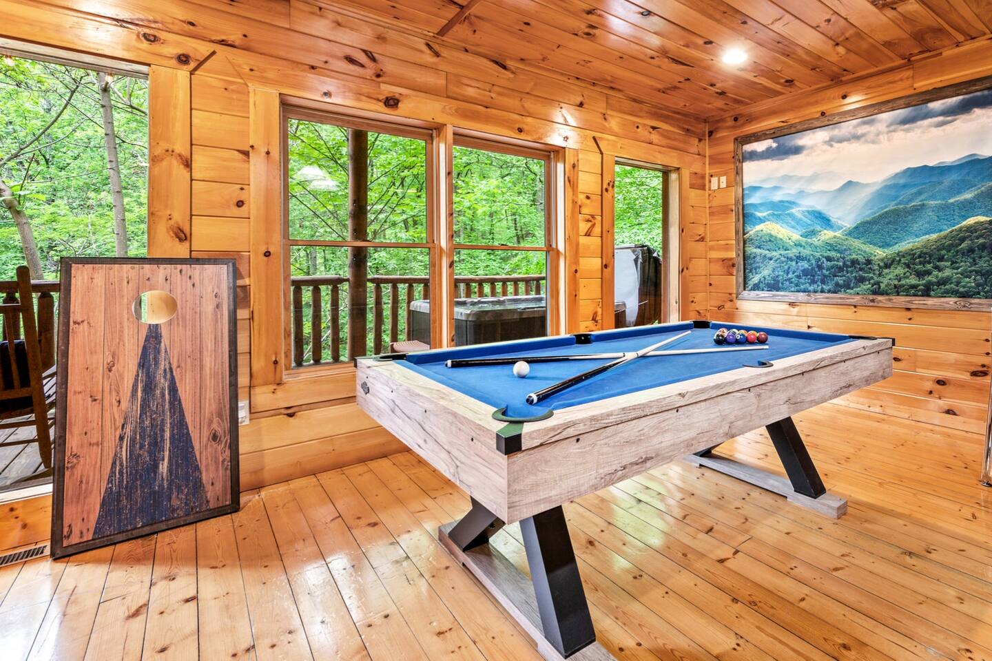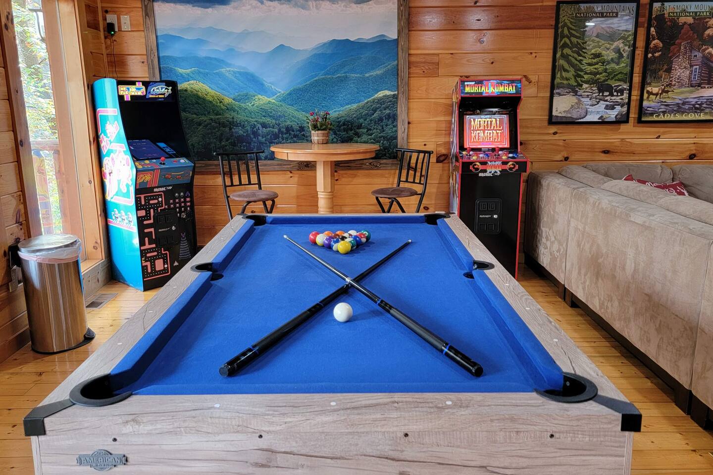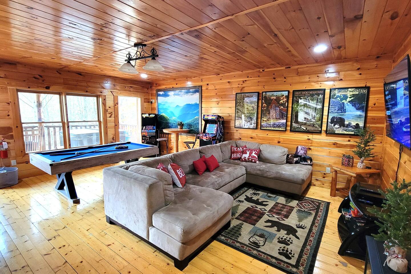 -So Much Space, So Close to Town! -Bears on the Property Daily! -Private Traditional Log Cabin -Just 3 Minutes to the Parkway -Hot Tub- Pool Table- Fire Table -Tons of Deck Space -3 Gathering Spots on 3 Levels *Perfect for Large Families * 3 Private Bedrooms W/ Ensuite Baths* 2500 Sq Ft of Indoor Space w/ 3 Living Areas *3 Large Decks W/ Lots of Outdoor Seating * Game Room W/ Pool Table, Arcade Games * Over 1 Acre of Private Woods * Only 3 Minutes to Gatlinburg Parkway & GSMNP