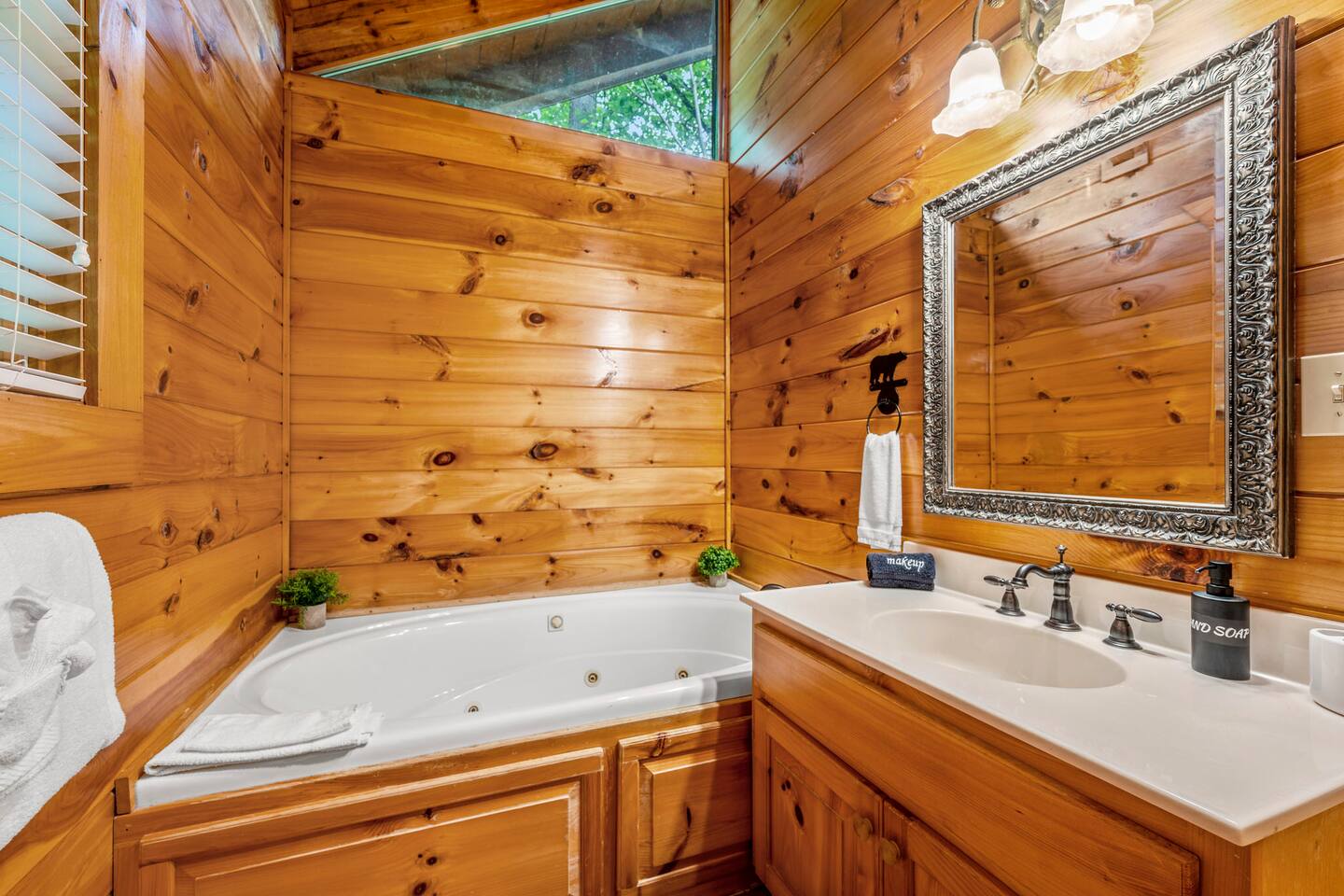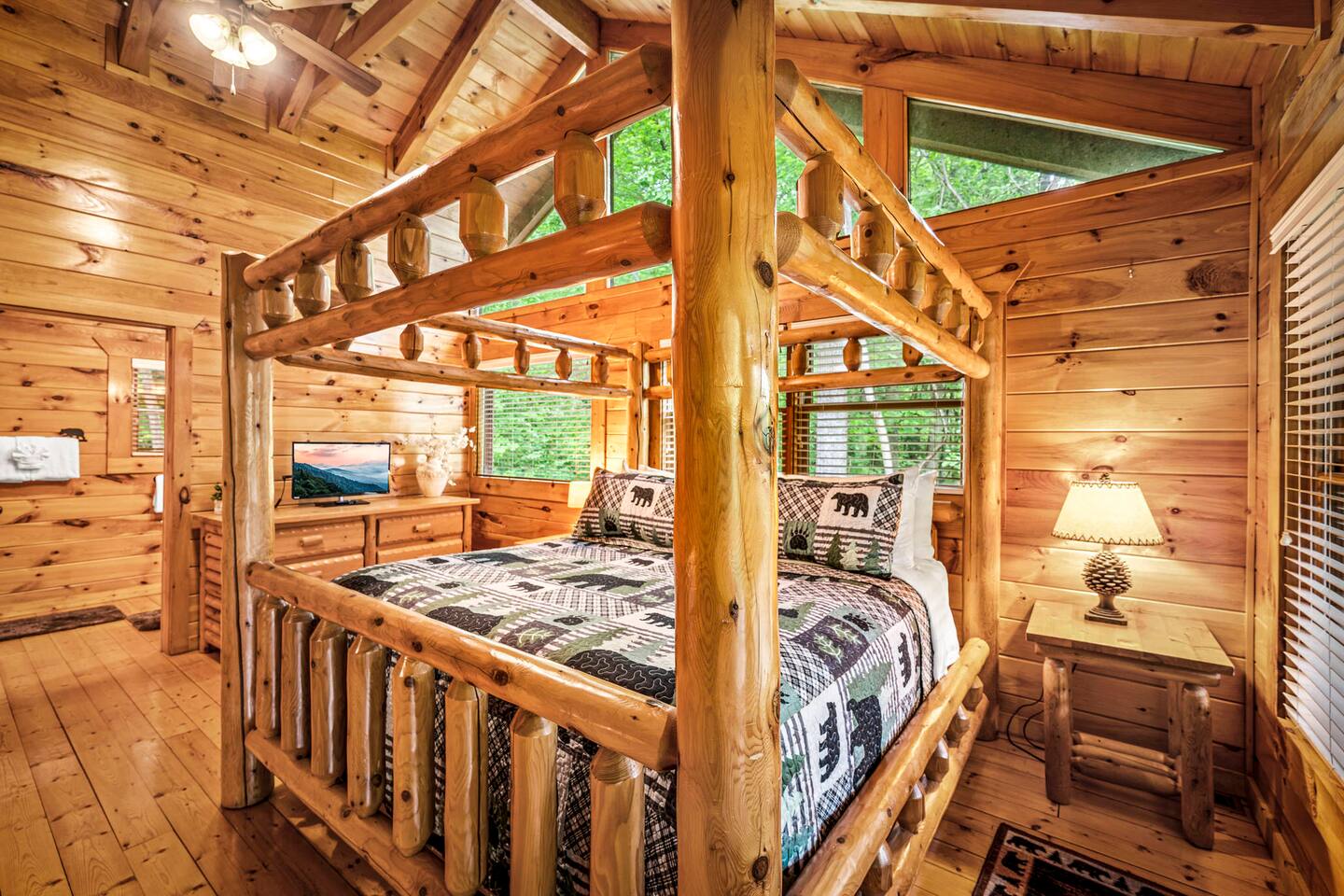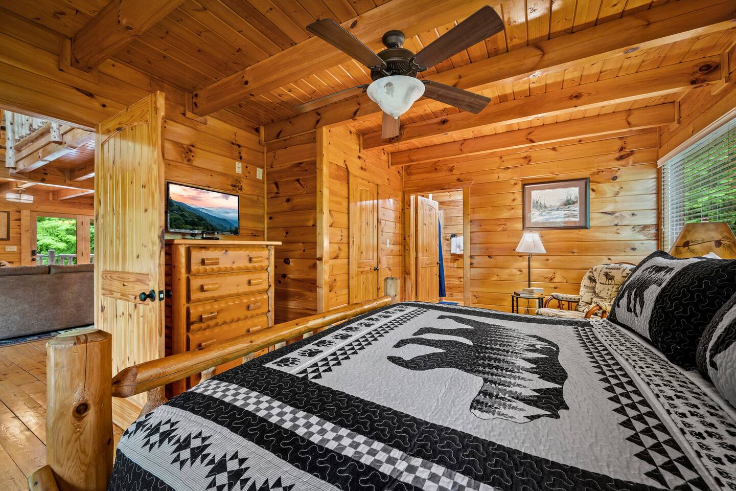 -So Much Space, So Close to Town! -Bears on the Property Daily! -Private Traditional Log Cabin -Just 3 Minutes to the Parkway -Hot Tub- Pool Table- Fire Table -Tons of Deck Space -3 Gathering Spots on 3 Levels *Perfect for Large Families * 3 Private Bedrooms W/ Ensuite Baths* 2500 Sq Ft of Indoor Space w/ 3 Living Areas *3 Large Decks W/ Lots of Outdoor Seating * Game Room W/ Pool Table, Arcade Games * Over 1 Acre of Private Woods * Only 3 Minutes to Gatlinburg Parkway & GSMNP