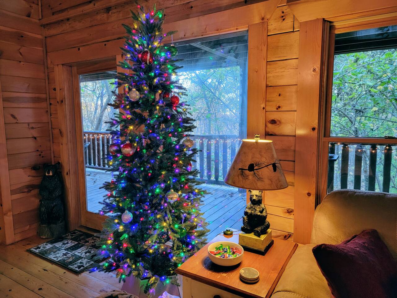 For your comfort and convenience, we provide fresh linens and towels, a small supply of coffee pods, creamer & sugar, paper towels, toilet paper, sponge and dish soap, shampoo and conditioner, body wash, and laundry soap. Please note: Whispering Canyon has a winding, moderately steep driveway with level parking at the top for up to 4 cars. Driveway conditions can be slippery or icy. 4-wheel drive is recommended in winter or snowy seasons. Bears do visit the cabin on a regular basis. There is an active bear trail from our driveway! Please supervise children outside, keep car doors locked and cabin doors shut at all times. Do not leave food in your car or outside. All trash must be placed in the bear bins. Because we are in the woods, you will see bugs. No Smoking No Pets No Exceptions