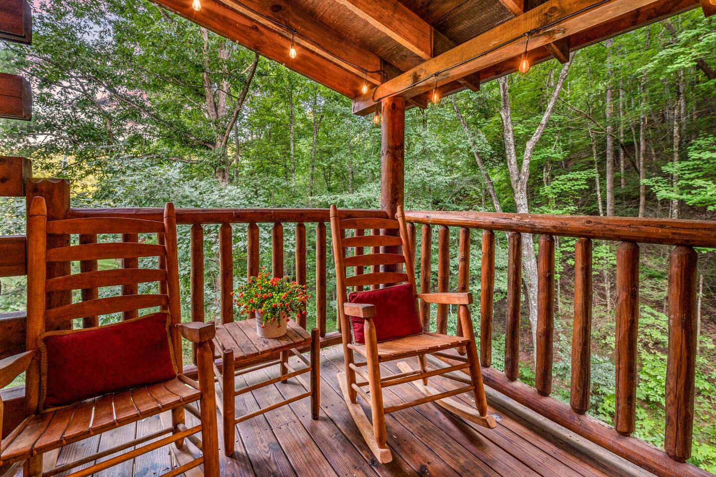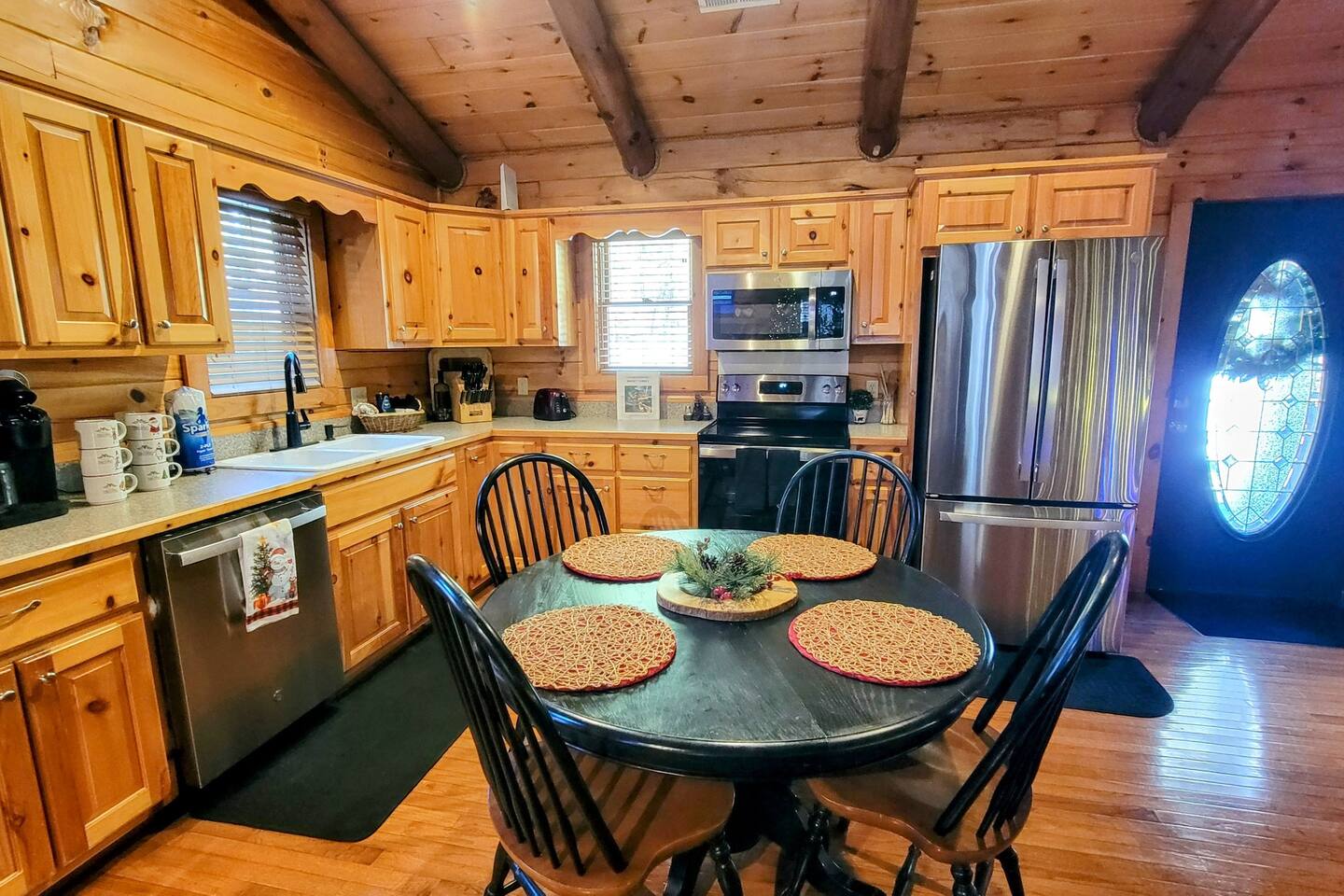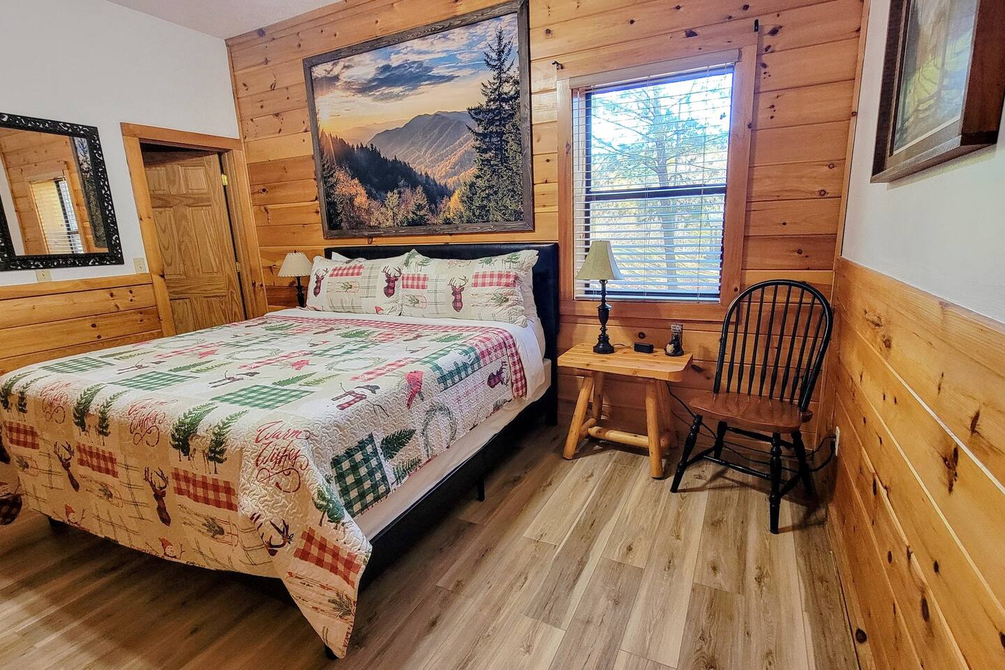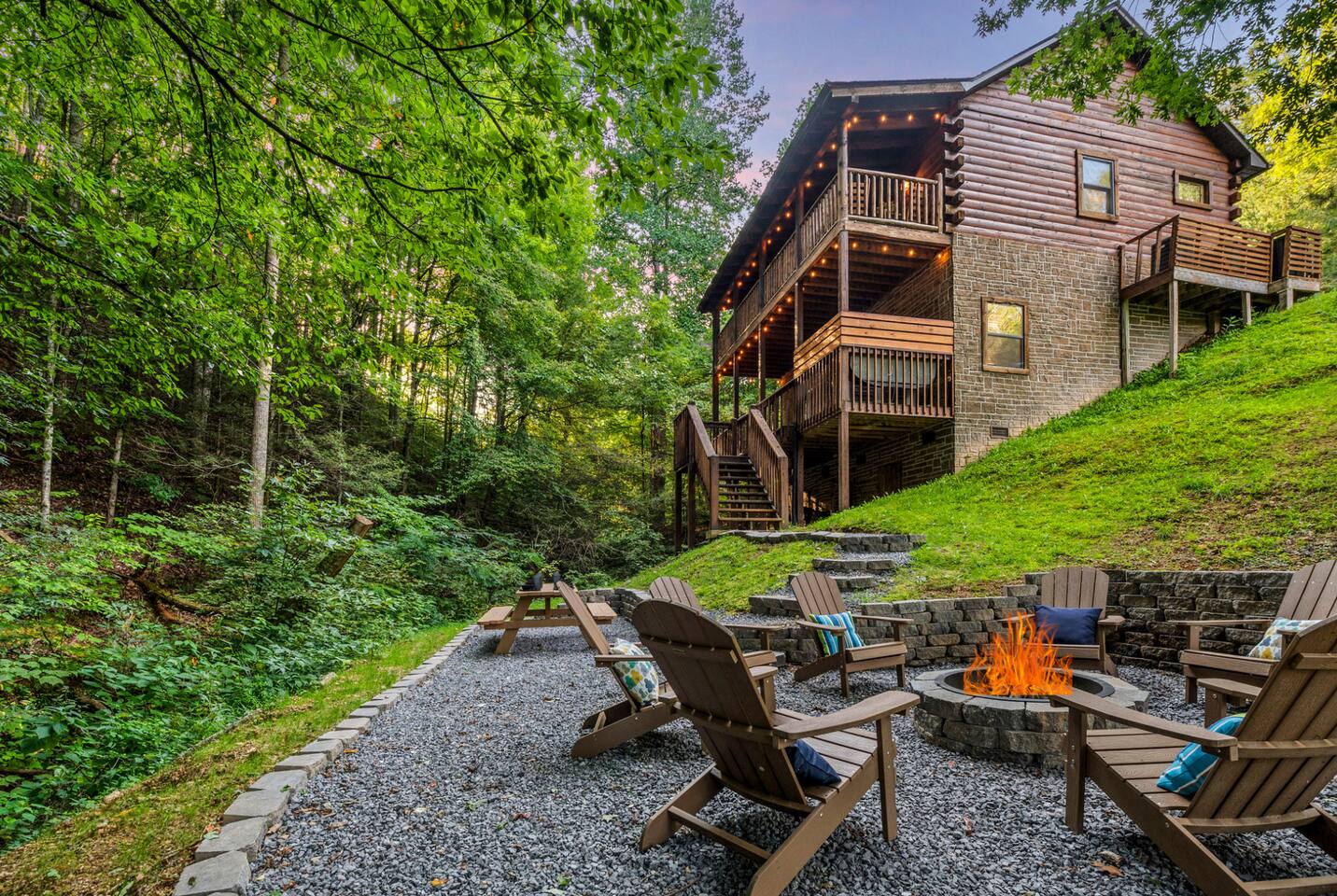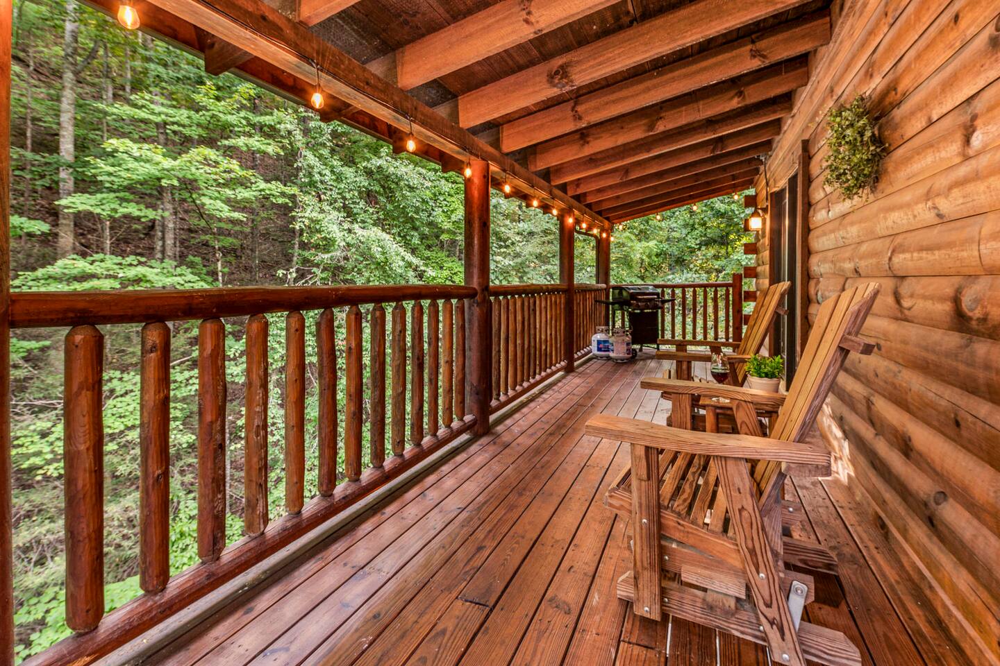 This is the perfect cabin for couples, friends, or smaller families looking to come together and create lasting memories. The cabin is divided between two levels, each floor with a private bedroom with King bed and full bathroom. Check out the photos of the new double walk in shower! Upstairs, besides a King bedroom with direct deck access, you will also find a living room with leather couches, sleeper sofa, large screen smart TV with Roku and DVD player, and a fully equipped kitchen. The gas fireplace, with push button starter, is available Oct-April. Downstairs is another private bedroom with King bed and full bathroom. The rec room is downstairs with a pool table, arcade games, TV, board games and books, and a queen sleeper sofa. The hot tub is right outside on the bottom deck. Both decks offer a beautiful wooded setting to enjoy your morning cup of coffee and your evening glass of wine (or shine). Continue down the back stairs to the yard overlooking the seasonal creek with a wood burning firepit. This is the perfect spot to roast marshmallows and enjoy the clear mountain air. When you are ready to venture out, you will find all Smoky Mountain attractions and amusements are only minutes away. We are in the Wears Valley area, right between the Great Smoky Mountains National Park and Pigeon Forge. Whether you are into hiking, biking, horseback riding, and rafting; or more into Dollywood, mountain coasters, dinner shows, and go carts, fun for all is close at hand! Smoky Turkey is a traditional cabin in the woods. This means you may see different critters including turkeys and bears . We advise you keep doors shut so these critters don't find their way inside. Also always lock your car and bring all food indoors. Be sure all trash always makes its way into the bear proof trash bins. Also, because we are in the woods, Smoky Turkey has spotty cell reception but offers high speed Starlink satellite internet. Simply log on to the wifi for all internet activity. All televisions have DVD players too, with a collection of modern and classic movies. We do not allow pets. We do not allow smoking or vaping inside or on any deck space.