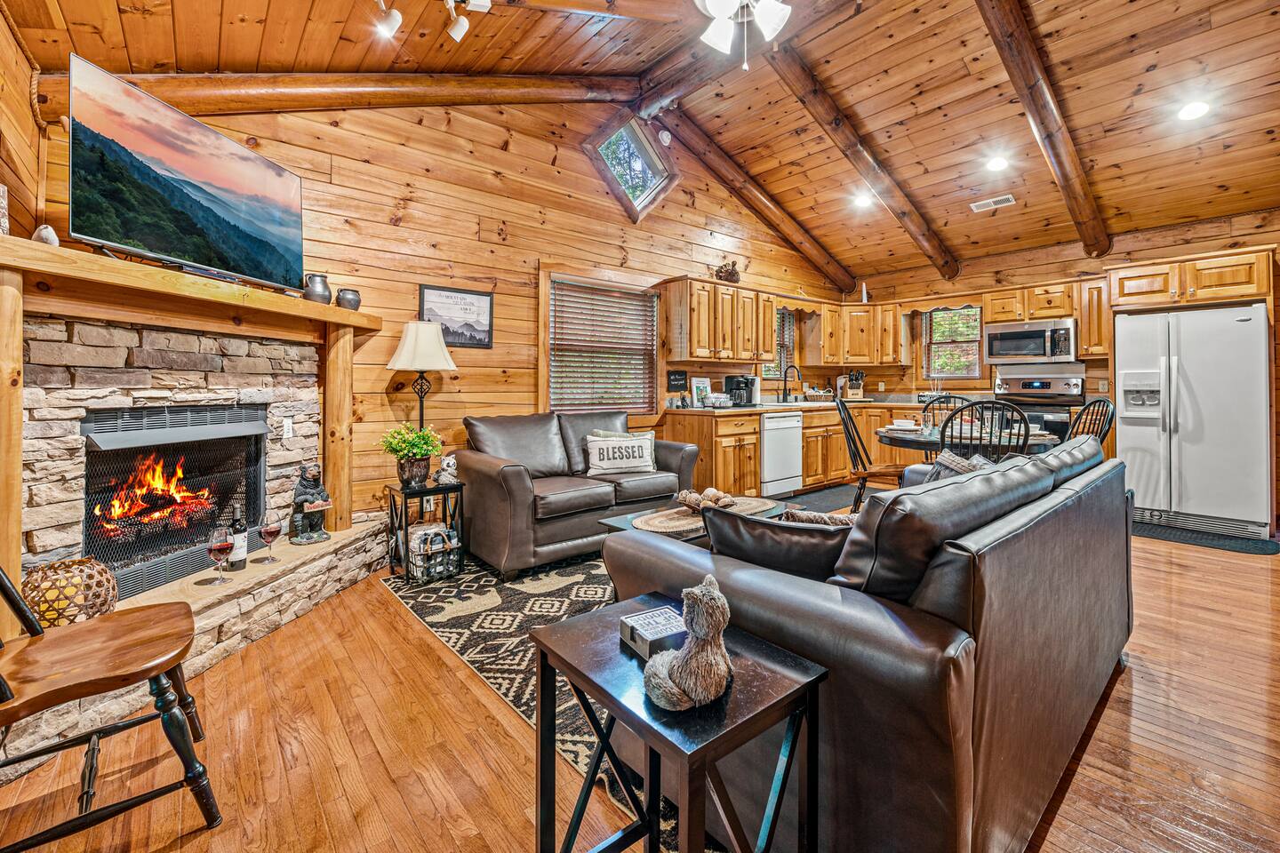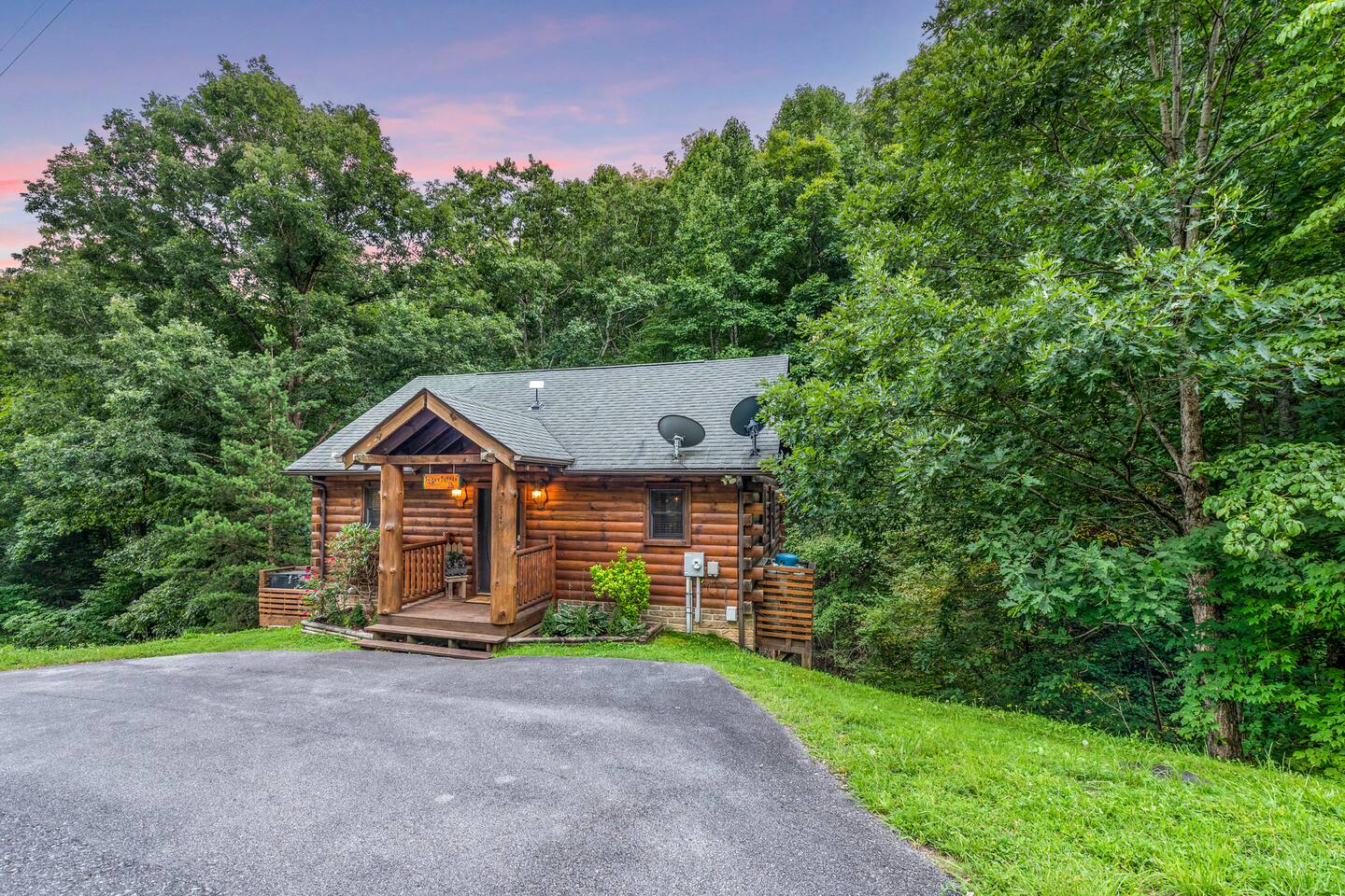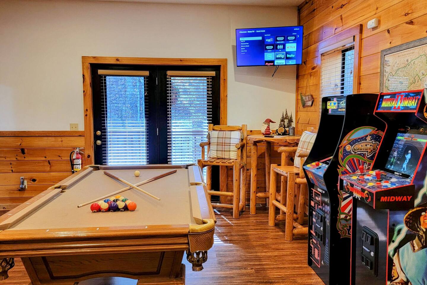 -Perfect For Couples-Friends-Small Families -Enjoy Amazing Wooded Tranquility -10 min to Cades Cove / GSMNP -10 min to Pigeon Forge! -2 bedroom / 2 bathroom cabin This Fantastic 2 Bedroom Cabin Includes: +Modern Rustic Furnishings +Flat Parking 2+ Cars or Trailer +Hot Tub +Wood Burning Firepit +Gas Fireplace +Charcoal BBQ +Pool Table + Arcade Games +2 King Bedrooms w/ Full Bathrooms +Double Walk-In Shower +Full Kitchen +Washer/Dryer +4 Smart TVs +Fast WIFI